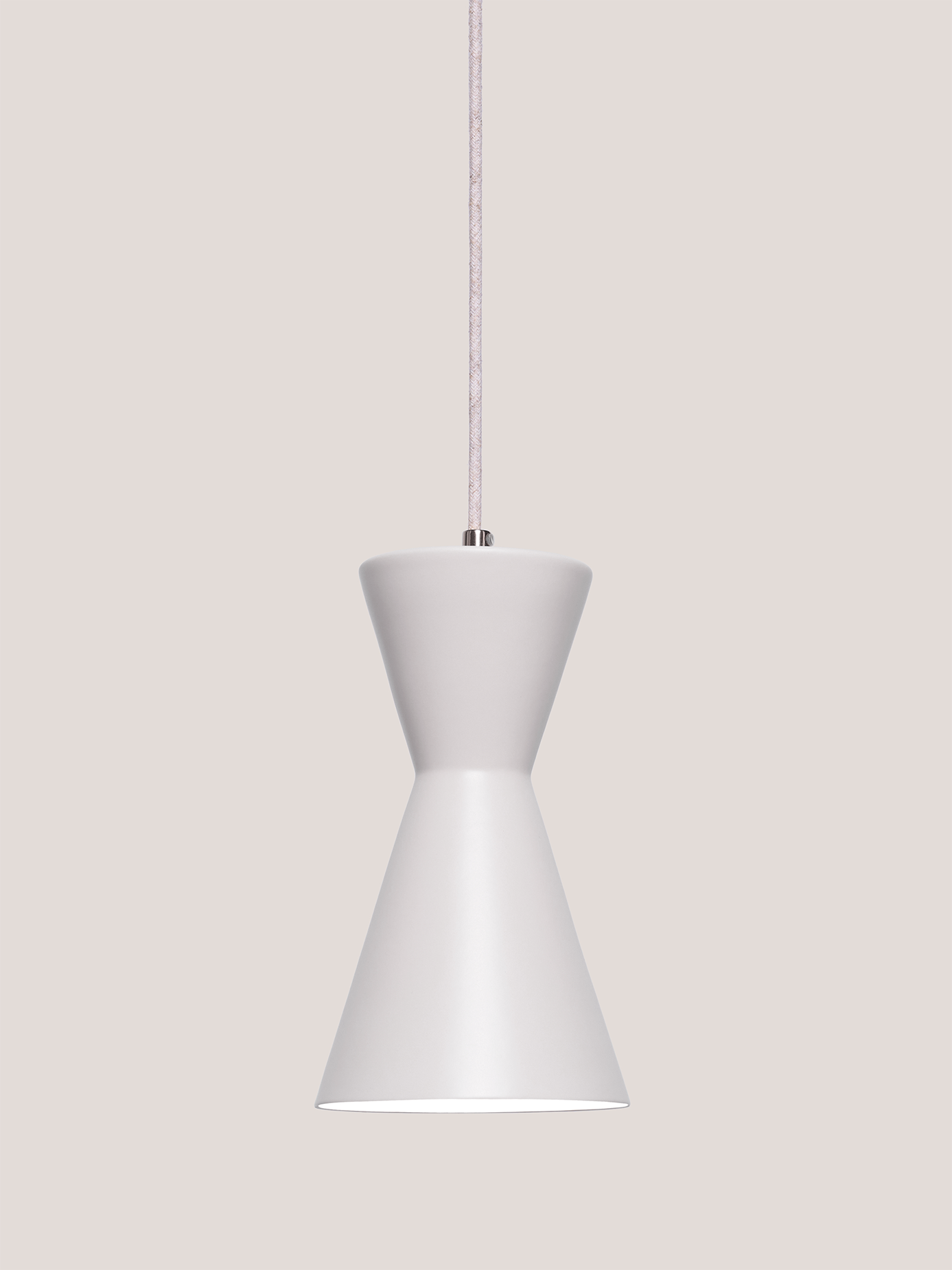 Criado a pensar nas pessoas que admiram a simplicidade, equilibra os contornos da sua forma simples com os acabamentos pastel e neutros das suas cores. Um candeeiro versátil que pode ser usado sozinho ou agrupado, e que pode para além de teto, ser usado na parede, fornecido com uma poleia de madeira que permite que a luz seja ajustada a qualquer altura. Ideal para uma mesa de cabeceira ou pequeno canto de leitura visto que, a profundidade da sua forma evita o brilho e emite uma luz suave.